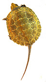 ▼うんきゅうの孵化後約1ヶ月の姿です。甲羅の色が飴色になってきたため